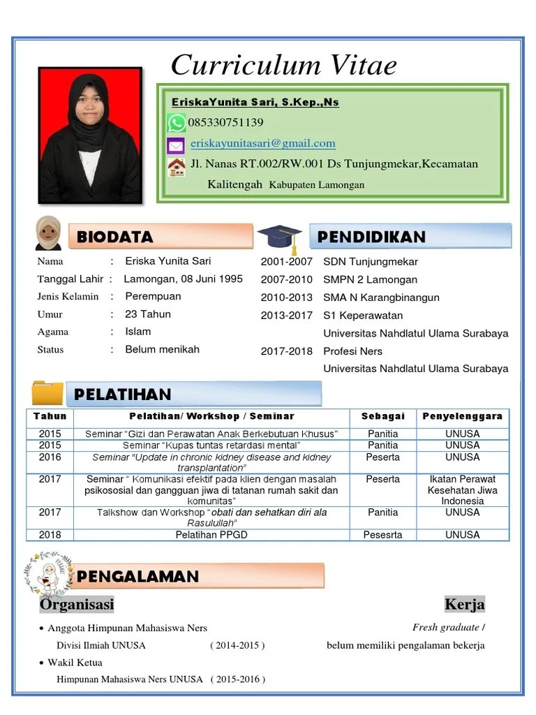 Anda sedang membuka postingan contoh cv fresh graduate perawat yang berada pada kategori curriculum vitae dengan tag postingan berikut contoh cv fresh. Misal anda adalah fresh graduate, maka carilah contoh cv fresh graduate. Buat anda lulusan tenaga medis seperti dokter, perawat,. Bagi kamu yang lulusan ilmu keperawatan . Berikut tampilan contoh cv perawat (profesi ners) dalam format pdf dan doc yang dapat kamu download untuk cv perawat fresh graduate dan cv .